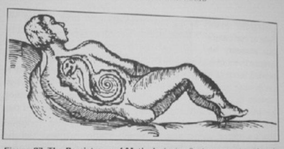 Here is a picture of the insides of a woman's body, as drawn by a 16th century barber surgeon. As you can see, her insides are actually just a giant snake.