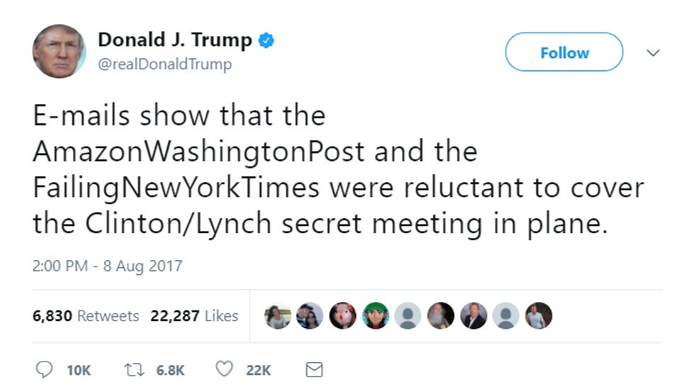 Now, this is not to say that there is no fluttering activity at Bedminster, or that the president hasn't been pulled away from the very important conversation he was having with his two scoops of ice cream in order to be given a 30-second flash card presentation featuring pictures of nuclear bombs and Kim Jong Un's face, with the occasional picture of Hot Pussy thrown in, to keep his attention. We are simply noting that, while this breaking news is reverberating around the world, President Fuck-Bonkers has ten fingers on his Twitterphone and his entire head up his asshole, bitch-tweeting about Hillary Clinton and the fake news.