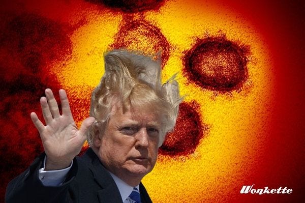 In April, Trump's minions begged him to STOP TALKING, FOR THE LOVE OF GOD, since every time he opened his mouth, Joe Biden's polling got better. And today would seem an odd time to go back to addressing the nation, what with Trump openly at war with his scientific advisers. The White House is releasing oppo research on Dr. Anthony Fauci, and the administration blocked CDC Director Robert Redfield from testifying to Congress last week. Even Dr. Deborah Birx, who apparently wanders around the White House blithely predicting that everything is just great, never better , won't stand at the podium and endorse Trump's wacko plan to open every school in America at full capacity. So we'll probably get Jared Kushner and Mike Pence warming up the crowd with vapid assurances that a vaccine is right around the corner, followed by and hour of freeform blarping from President Loudstupid.