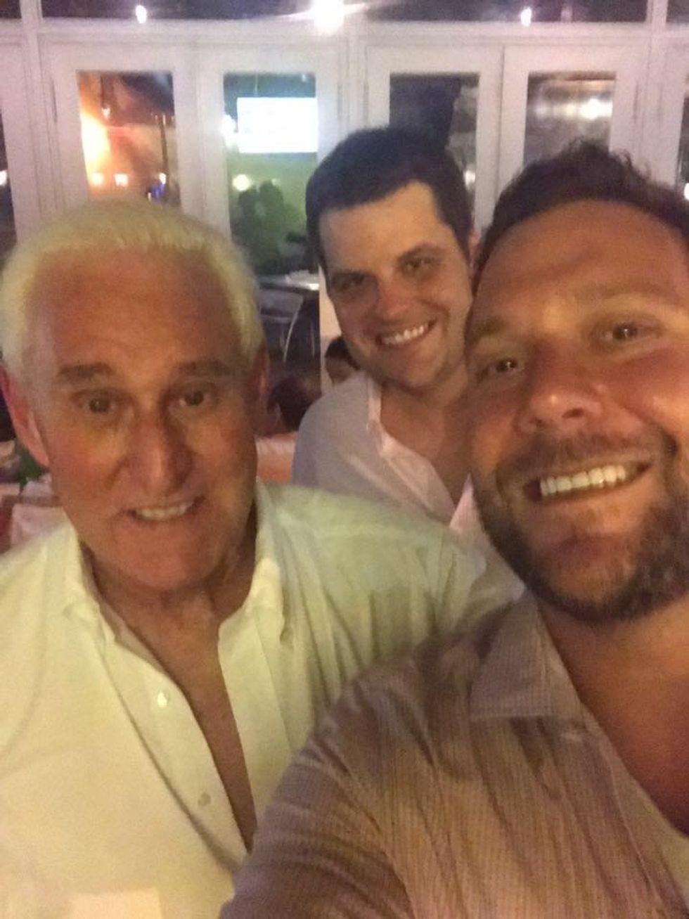 Oh well, here's a picture of Florida Rep. Matt Gaetz hanging out with Roger Stone, not that we're suggesting he has anything to do with this, we are just posting a picture.