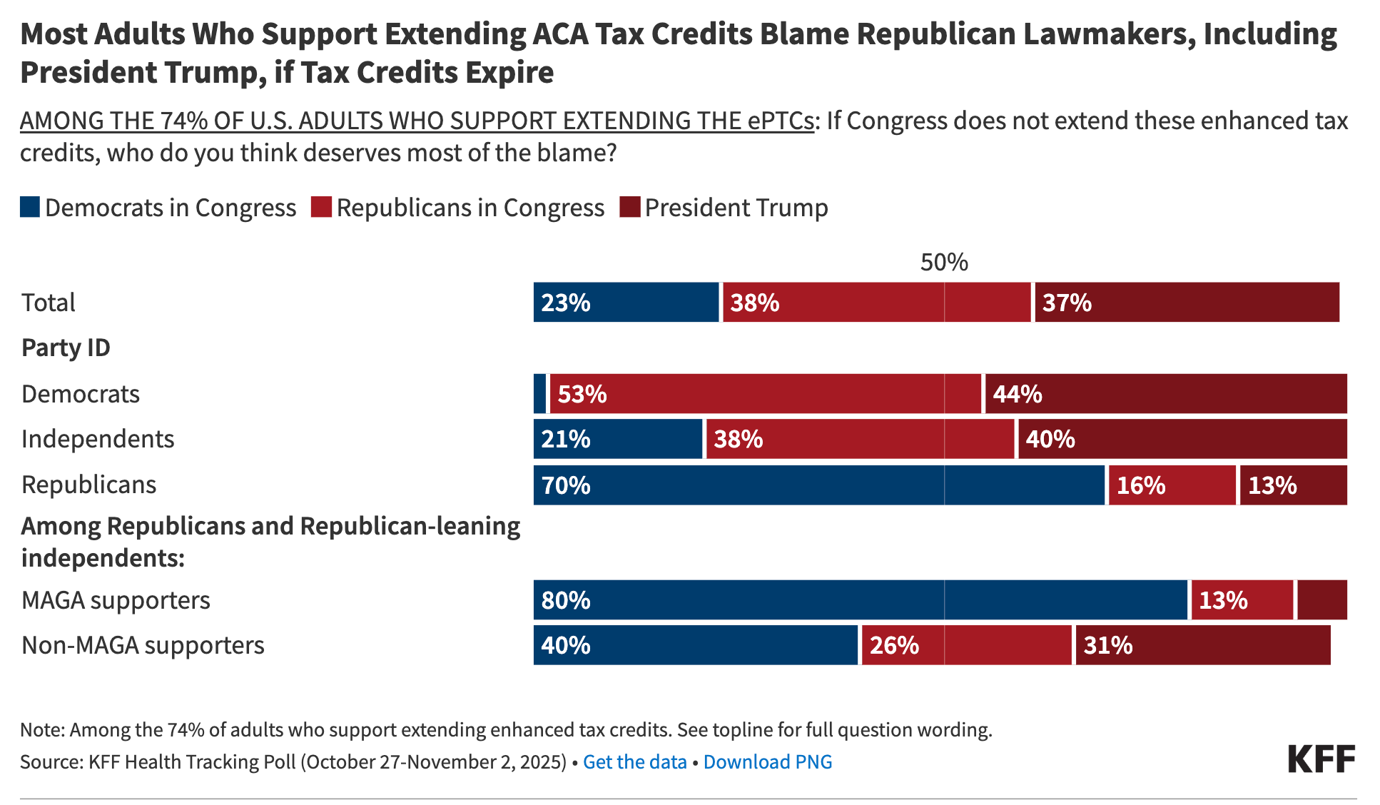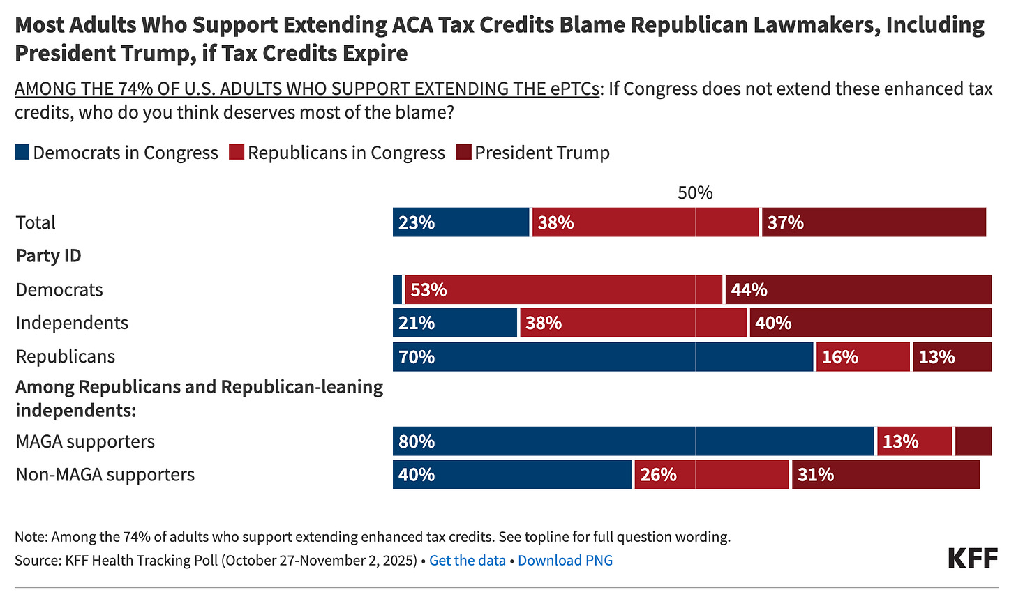 There is, however, one particularly weird finding from that poll — 76 percent of Republicans who support extending the ACA subsidies said they would blame Democrats if they were allowed to expire. How does that work? What’s the logic there? Are they trolling or do they just have some very bad information?