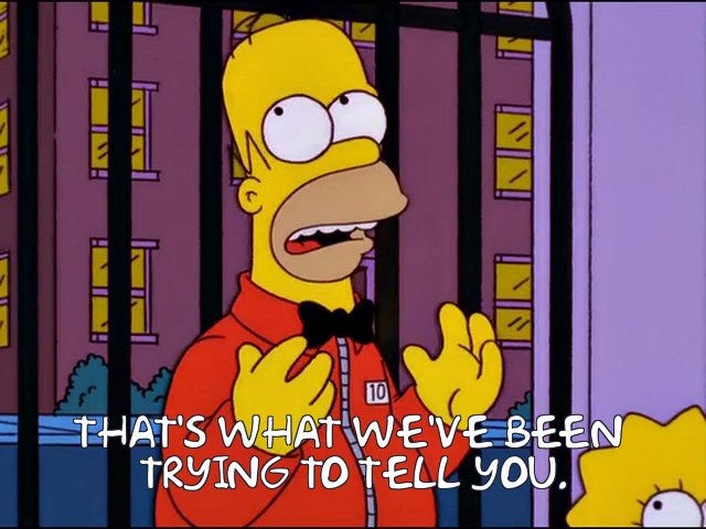 Four more years of saying “I told you so” for us! It’s the story of Sisyphus, but stupid.