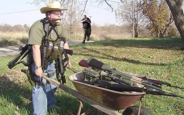 I'm pretty sure the wheelbarrow photo is weirder than Doktor Zoom realizes, though it is definitely staged. I used to moderate gun forums back in the late 1990s and early 2000s, and the first thing it made me think was "Gunkid!" Yes, it's staged, but it was definitely staged by gun nuts/preppers making fun of a particular troll from those forums days. One of my fellow moderators wrote the definitive piece on Gunkid and his Tactical Wheelbarrow Doctrine, so let me just link you to LawDog (in real life, a Texas law enforcement officer and humorist of some reknown.)