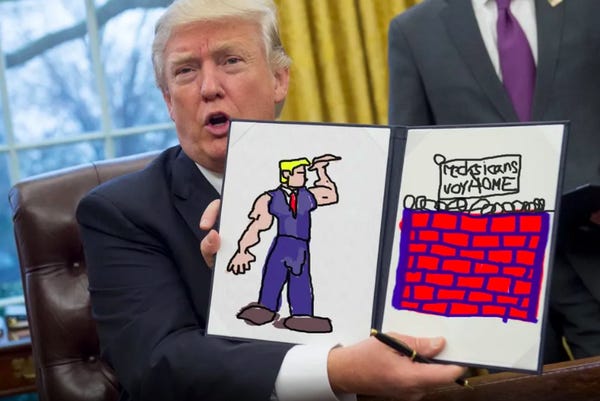 But don't worry, the Trump administration will do what it always does -- pull the fire alarm and race outside shouting YOU HAVE TO LET US, IT'S A NATIONAL SECURITY EMERGENCY! It's what they did to justify putting tariffs on our allies , assassinating a foreign leader without informing the Gang of Eight , seizing spending power over the Ukraine defense allocation from Congress and then redacting the evidence, and stealing money from military base housing for this stupid wall. Twice .