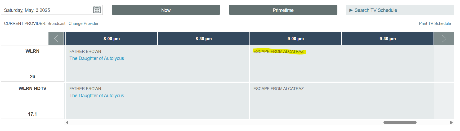It turns out, we may have been close! A random BlueSky user points out that the PBS station that serves West Palm Beach had aired Escape from Alcatraz with Clint Eastwood on Saturday night. We might have gotten the movie and the star wrong, but we got the basic gist correct: