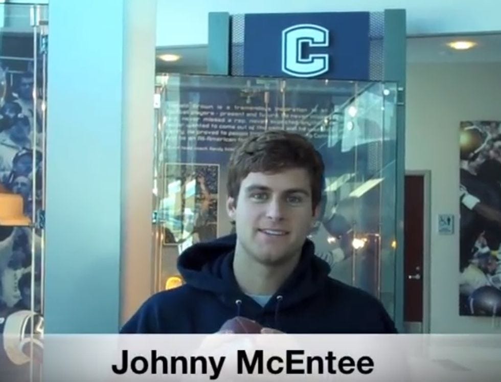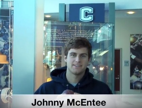 Or you could just look at this picture, from a viral video of McEntee, AKA Johnny Mac, doing football trick shots, back when he was the quarterback at the University of Connecticut: