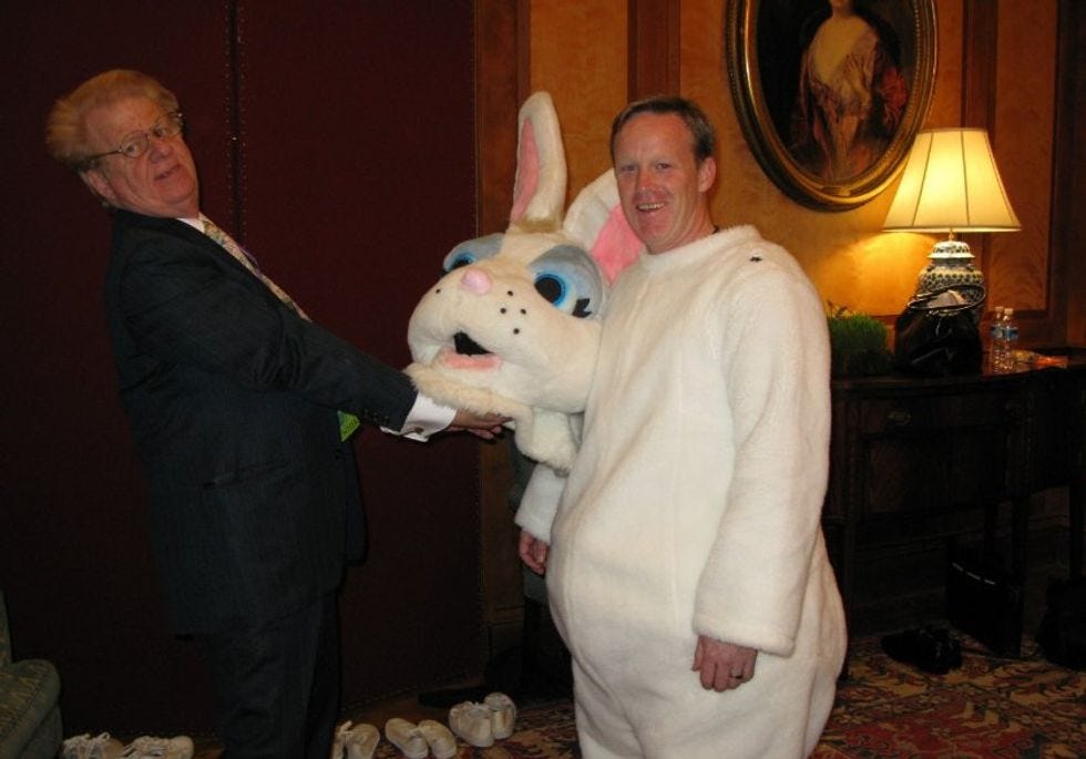 Anyway, Sean Spicer is a toolbag covered in dick cheese, and on top of that, here is a picture of him dressed as a bunny: