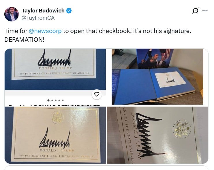 And he did! He sued for $10 billion over this alleged defamation. Which is going to be a problem, since the Journal has now released a copy of the card so we can all see that it does in fact exist: