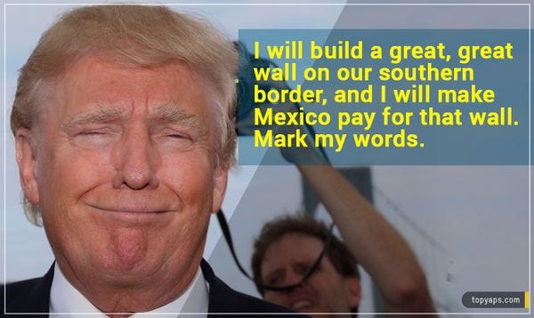 So, how's that wall working out? Did Mexico reimburse us yet, or do we have to submit our receipts through payroll? A 2,000-mile construction project is totes NBD, right?