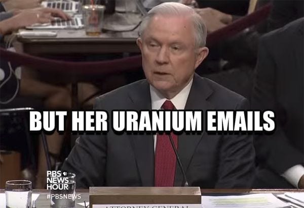 In another desperate attempt to try to change the subject and save his ass, Jeff Sessions is formally asking if he should look into Hannity's uranium thing.