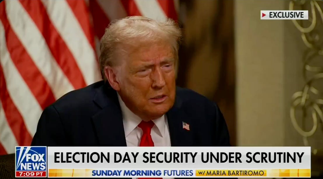 He told Fox Business rage muppet Maria Bartiromo yesterday that the true threat to America’s election on November is “sick people, radical-left lunatics,” AKA the enemies “from within.”