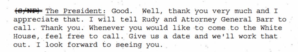 TRUMP: I would like him to call you. I will ask him to call you along with the Attorney General. Rudy very much knows what's happening and he is a very capable guy. If you could speak to him that would be great.