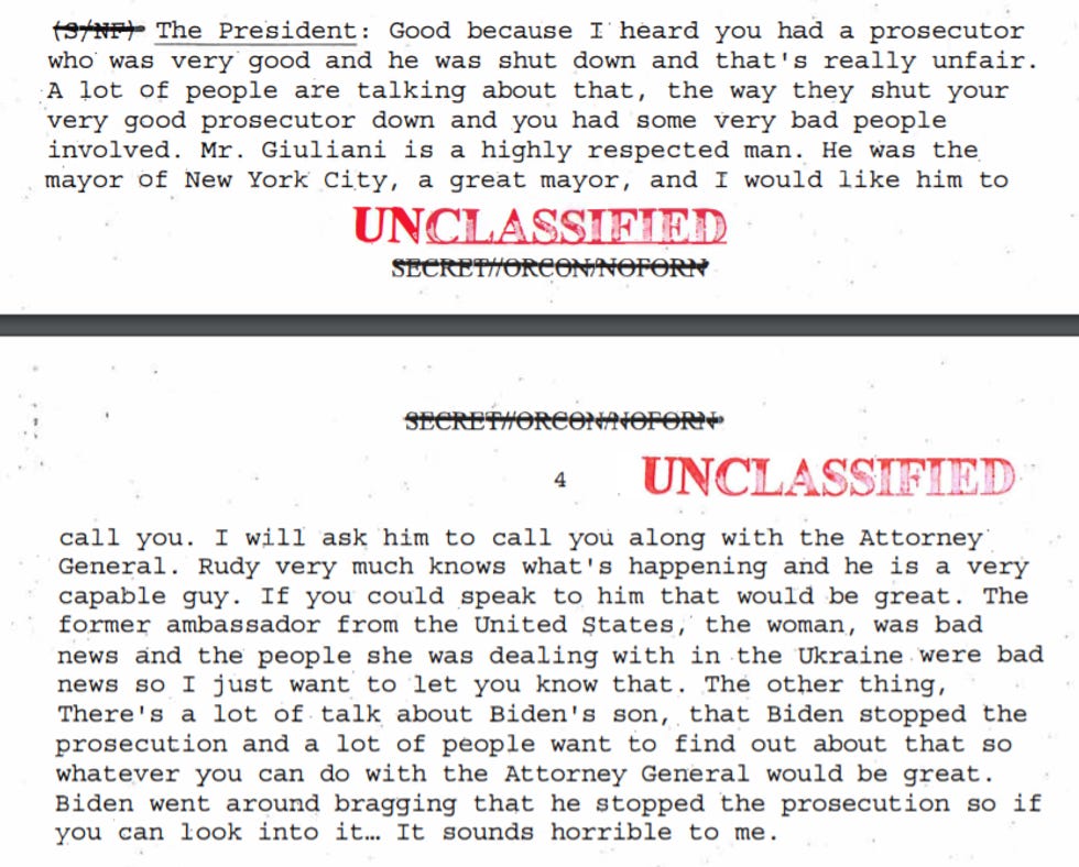 TRUMP: There's a lot of talk about Biden's son, that Biden stopped the prosecution and a lot of people want to find out about that so whatever you can do with the Attorney General would be great. Biden went around bragging that he stopped the prosecution so if you can look into it ... It sounds horrible to me.