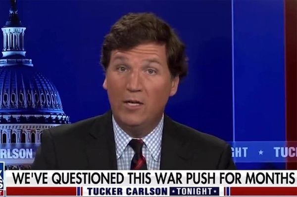 Here is a box full of some of our favorite headlines this year about Tucker being against America and Ukraine and freedom and goodness and human decency and on the side of white fascism and Russia: