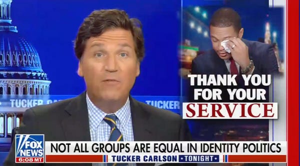 “Don Lemon may be Black, but that doesn’t mean he is allowed to criticize Nikki Haley. Sorry!” Carlson ranted. “If it’s a choice between a Black man and liberal white lady, the Democratic Party will drop the Black guy every single time. Who makes up a bigger proportion of the electorate: the Don Lemons or the Nikki Haleys? It’s not a close call. Shut up, Black guy! How dare you criticize girl power or pretend that biology is real? You’re fired!"