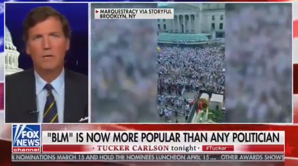 Lest you think Tucker is just having a conniption because people love Black Lives Matter more than they love Trump, he's really upset that Black Lives Matter is more popular than basically everything . Black people! And their lives! Mattering! Tucker Carlson is SORE offended by this!