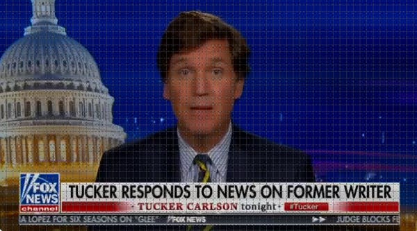 Tucker explained that Neff's words had "no connection to the show," despite how Neff's racist and sexist posts are quite a lot like what happens on the Tucker Carlson TV show every single night, and despite how CNN reporter Oliver Darcy found that specific things from Neff's little underfucked online troll forum actually made it onto Tucker's show. Tucker made a vague attempt to say Blake Neff is very sorry and Blake Neff has been a very bad boy (naughty Blake!).