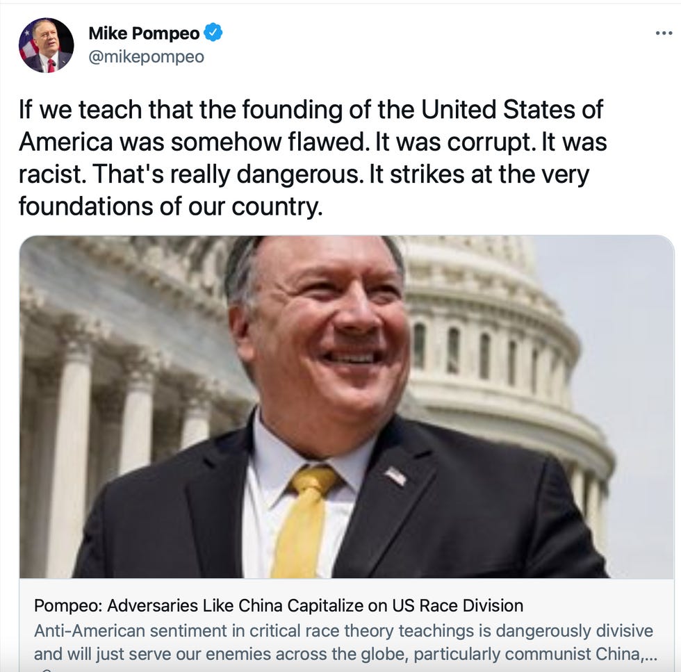 Conservatives are still ranting about critical race theory, which they insist is the most atrocious, disgusting thing that ever happened in America. Former Secretary of State Mike Pompeo, trotting out some stale 1950s talking points for Newsmax, claimed that communist China thrived on US race divisions that only exist because CRT radicals keep talking about it.