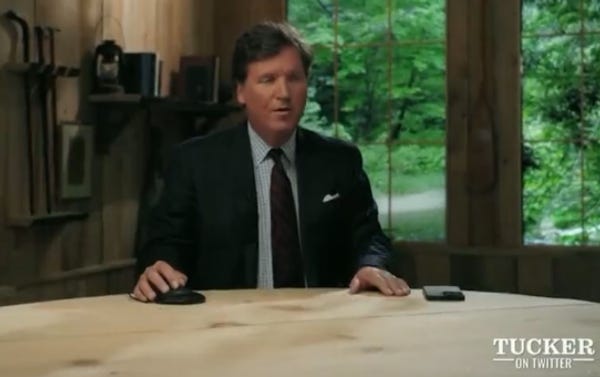 The other day, for no reason we could tell besides he was lonely (and unemployed), Tucker Carlson turned on the camera in his she-shed and spit Russian propaganda at Twitter for 10 minutes. It was bad and he should feel bad.