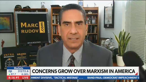Host Rachel Rollar kicked off the segment by talking about how there is "growing concern about extreme ideologies taking root in America." This is certainly true, but Rollar quickly makes it clear that she is not talking about white supremacy or QAnon conspiracies, but communism . She then introduces her guest, Marc Rudov, who claims that Republicans giving in to Democratic demands has led to "panoramic Marxism."