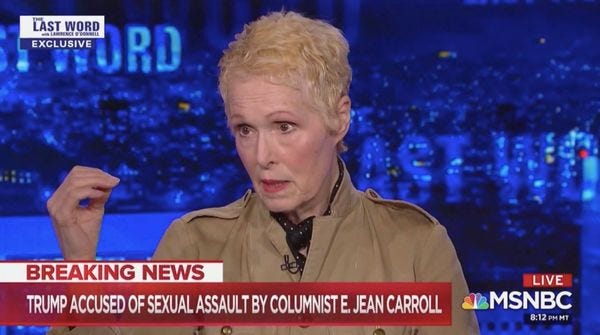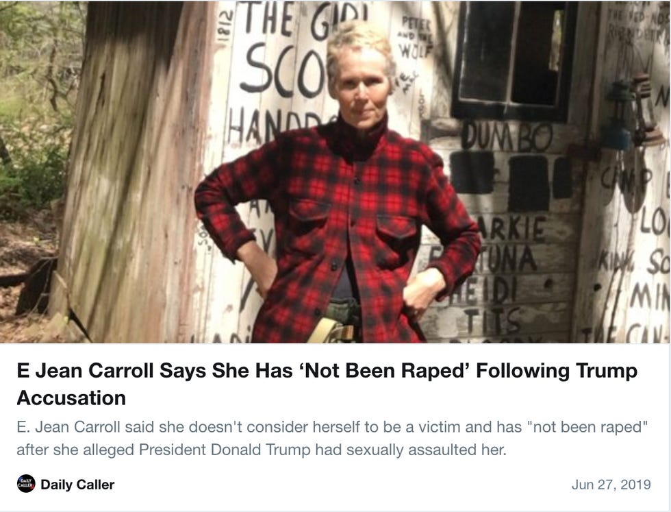 This should obviously be bigger news. Instead, the bigger news coming from that podcast is that E. Jean Carroll does not like to refer to what happened to her as rape, even though it obviously is rape. That is what is being discussed over on Vox, and touted by the Daily Caller as some kind of evidence that Trump obviously did nothing wrong.