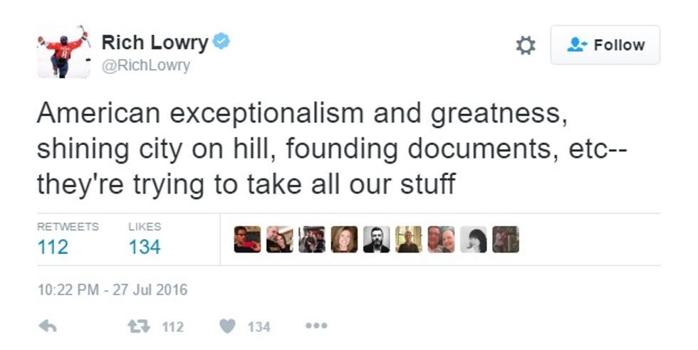 Republicans weren't entirely delighted with the speech, especially the contrast between Ronald Reagan's rhetoric and Trump's. Rich Lowry was particularly butthurt, which made us smile: