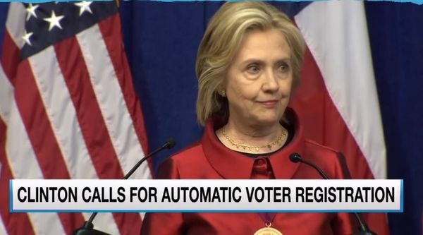 Hillary Clinton pleasantly surprised the hell out of us Thursday by calling for every American to be automatically registered to vote at 18, following the lead of Oregon, which passed universal registration earlier this year.