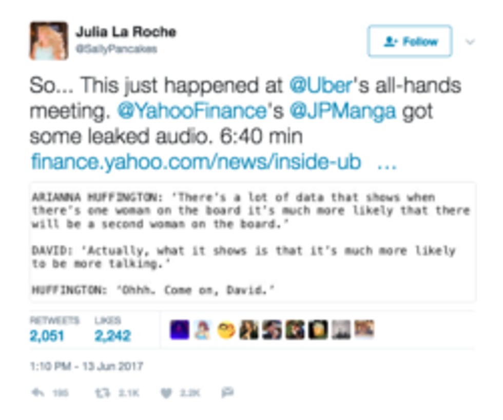 Instead of rolling out their new DON'T BE SO DAMN SEXIST Policies, Uber is #winning with this exchange between board members Arianna Huffington and David Bonderman.