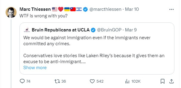 A Twitter account run by the “Bruin Republicans at UCLA” has been posting a great big load of racist rhetoric since at least last week, and outside some astonished posts on social media, there doesn’t seem to be much concern about it. Certainly no condemnation of the posts from California Republican officialdom, as far as we can tell. Haha, we expect such ridiculous things.