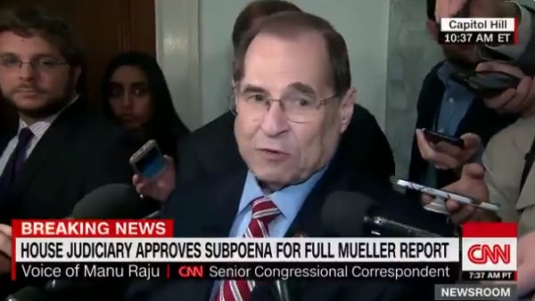 We are not sure, but Jerry Nadler convened his House Judiciary Committee this morning -- like he said he would -- and they voted to authorize subpoenas for the entire Mueller report, no redactions, no bullshit -- just like he said he would!