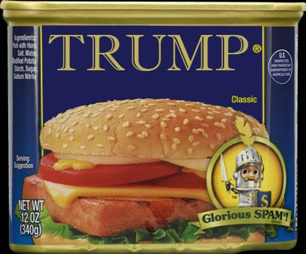 Donald Trump really loves spam. We're not talking about the delicious Hawaiian delicacy (Donald Trump would never eat a canned meat, and Donald Trump only uses Trump branded products); the spam we're talking about here is his email . It would seem that Donald Trump just couldn't let Hillary be the only person in this race with an email problem!