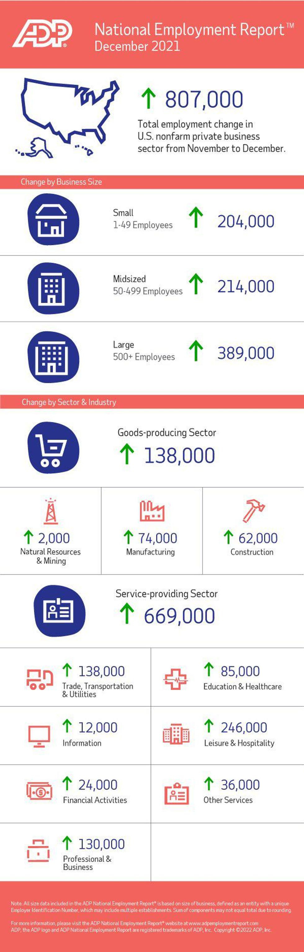 Retailers and manufacturers are close to fully recovering losses from early in the pandemic. Leisure and hospitality employers, which were hit particularly hard, have made strides since last January but are still 7% below pre-pandemic payrolls levels.
