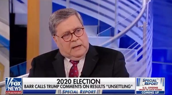 BARR: The truth is [Trump] lost the election. I understand a lot of these very sensational stories come out online and in social media but they’re simply not accurate.