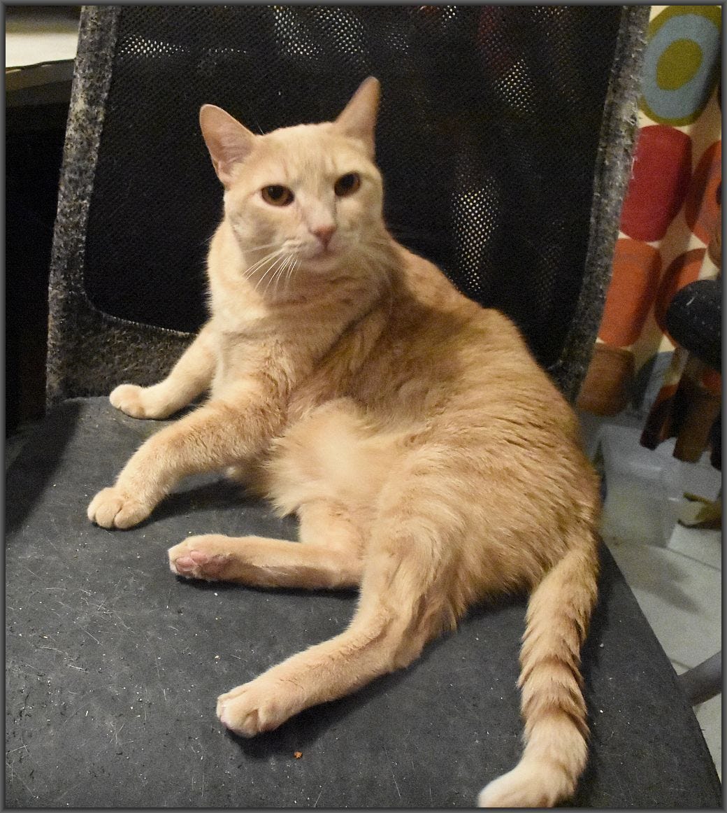 Simba annoyed because I disturbed him with the camera while he was enthusiastically bathing on The Timeshare Chair.