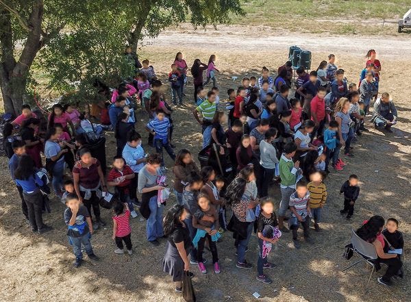 This is where we point out that children are only supposed to be held by the Border Patrol a maximum of 72 hours before being transferred to the Office of Refugee Resettlement (ORR) for placement with a sponsor -- usually a family member who's already in the USA. But the Department of Health and Human Services, which runs the ORR, has slowed its approval of such placements, and its baby jails are already filled to capacity. Which is why the government is opening internment camps on military bases. Also, it doesn't help that ICE is arresting undocumented family members of those who DO apply to sponsor kids.