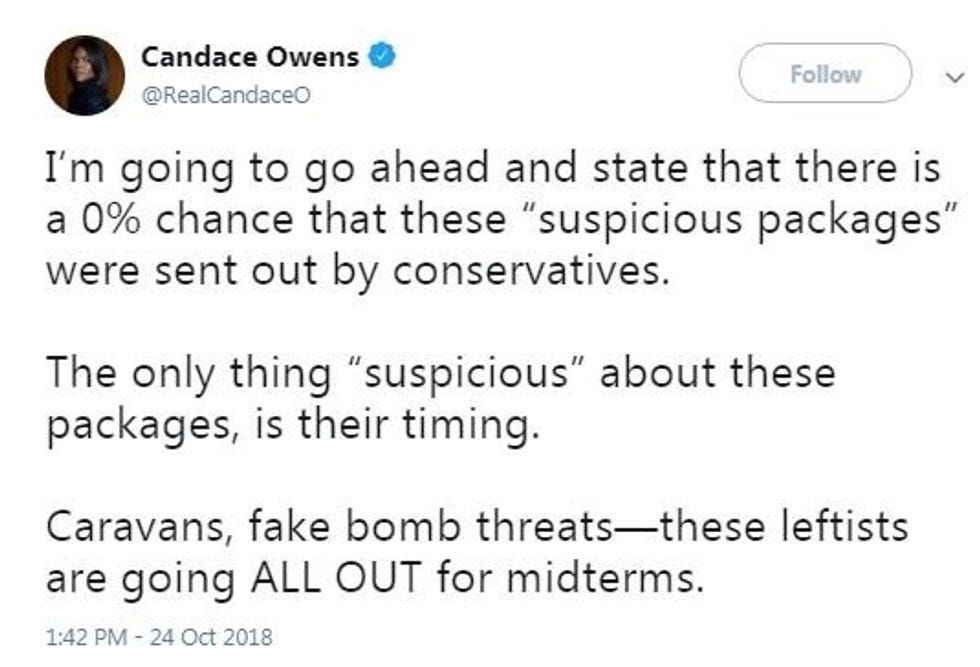 The timing of these suspicious packages is all too convenient with midterms approaching. Also the fact that none o… https: //t.co/Ed5nqwDDyI