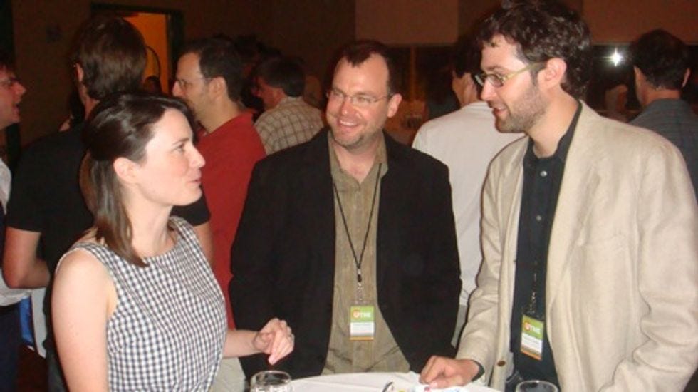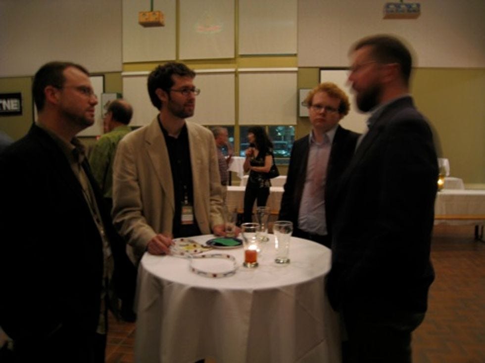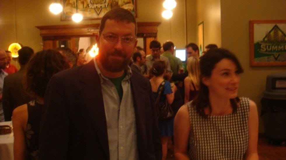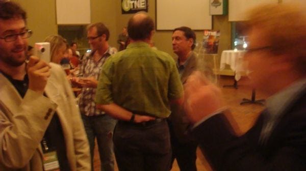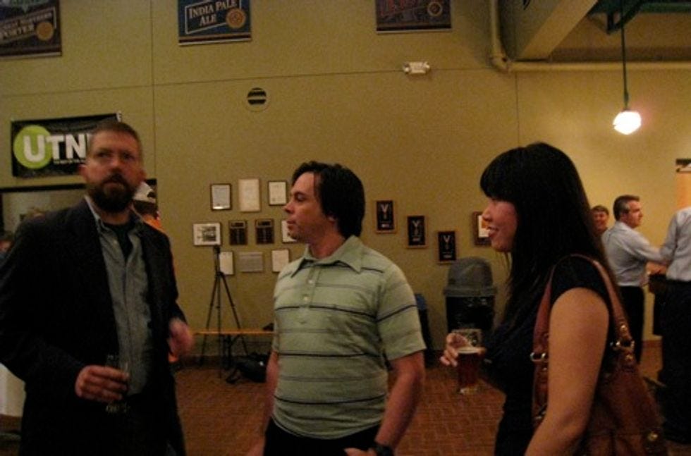 The belovedUTNE Readerrented out an entire brewery last night, and your Wonkette joined many other media dorks for fun and hijinx. Here'sUTNEweb boss Bennett Gordon, a bunch of people, some guy with his hand down his pants, and a blurry character who writes for Wonkette. More pix after the jump.