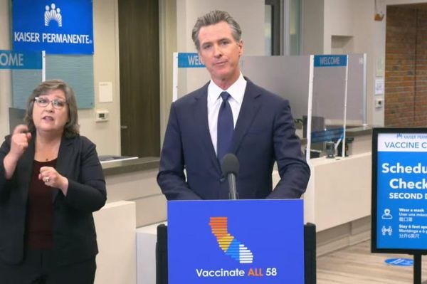 Newsom added that, to help people get reliable vaccination information from healthcare providers they trust, the state will be reimbursing medical practices up to $55,000 if they set up community-based vaccination sites in their offices, as well as a whole bunch of other vaccine outreach programs and clinics at barbershops, colleges, universities, and trade schools, houses of faith, and even at McDonalds restaurants and amusement parks.