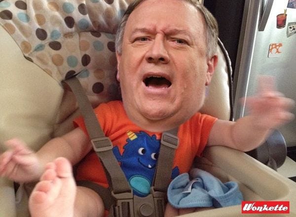 Yr Wonkette is supported entirely by reader donations. Please help us keep the servers humming and the writers paid. We promise not to ever get on any mode of transportation with Mike Pompeo.