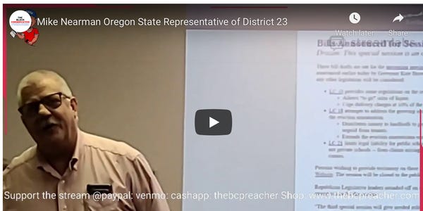 Now, we've learned this wasn't a spontaneous asshole event but rather appears to be premeditated riot assistance. Oregon Public Broadcasting uncovered a YouTube video, apparently streamed live on December 16, that showed Nearman speaking in front of a projected computer screen. You can watch the video here, but only if you're a paying member of "The Black Conservative Preacher" channel, and there's no good reason for that. Nearman told his audience about how they could engage themselves in state politics, saying they could "take as big a bite or as small a bite as you want." This seemed like your typical, average infomercial, but then he started hinting about a so-called “Operation Hall Pass."