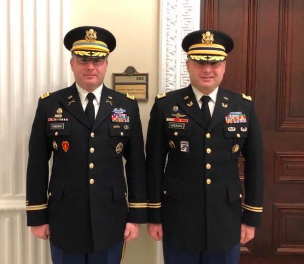 Lieutenant Colonel Yevgeny Vindman, twin brother of impeachment witness Lieutenant Colonel Alexander Vindman , filed a whistleblower complaint alleging retaliation by individuals at the White House, including the president and national security advisor. And now the chairs of the House Intelligence, Oversight and Reform, and Armed Services Committees are demanding an investigation by the Acting (natch) Inspector General of the Department of Defense.