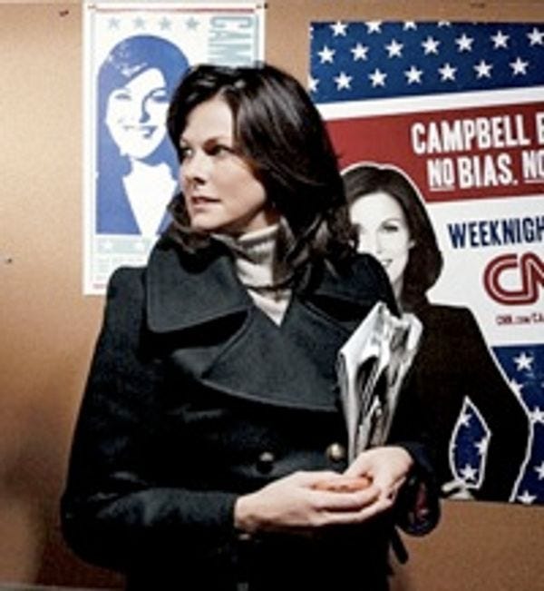 Ooh look pretty pictures! The famous journalistic news-reporting organizationVogueprofiles your Katie Couric, your Rachel Maddow, and wait, who's this? We seem to have seen this one somewhere, recently... If you click through to Comments and scroll down just enough, you can now see six (6) images of Campbell Brown on this web site: top, side, and middle of the screen, plus the "live" Ms. Brown and her two posters in the Vogue photo. (YOU'RE WELCOME.) Campbell Brown is the Saparmurat Niyazov of American cable news. [ Vogue ]