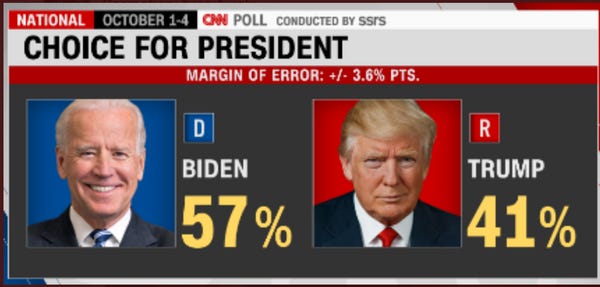CNN released a poll Tuesday that was devasting for the president and a source of delight for normal people. Biden was whooping Trump 57 to 41 percent.