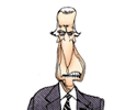 Who it looks like: A monkey? Whose face has been hit with a frying pan? And it's sitting in a chair? And has no legs for some reason? I dunno. This cartoonist is from Brazil, so I'm going to give him a pass on the assumption that they have no TV or newspapers or media of any kind down there and he's drawing this based on descriptions poorly translated into Portuguese.