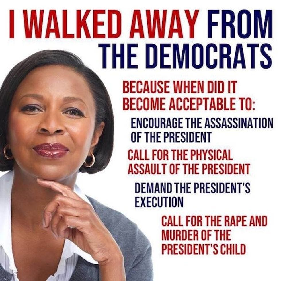 I can't account for every anti-Trump Twitter user, of course, but no actual elected Democrat has done any of these things. And where was this nice black lady during the Obama administration when our brother was being lynched in effigy? Probably selling dish soap or wireless Internet, I guess, because as James Kosur revealed Monday in the Hill Reporter , she isn't really a former Democrat but a professional (more or less, why is she posed this way?) model.