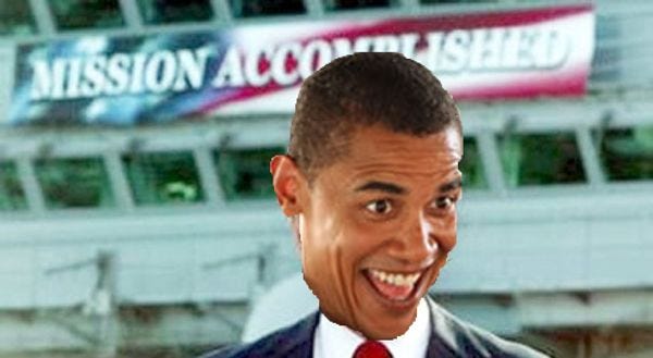 Remember that time we went to war in Afghanistan? Yeah, well, apparently that's sort of over now, technically speaking. On Sunday, President Obama issued a statement declaring that We Won Woo Hoo! -- or, more accurately, we've concluded our "combat mission." We've come to understand this means we've won the war enough that we can share a collective celebratory high five, but we reserve the right to un-win the war, just in case it doesn't stick. Because that's how the U.S. of A rolls now.