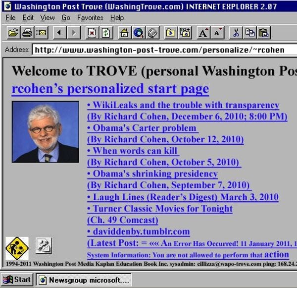 But then we hadanotherthought. This one -- like all thoughts about the awfulness of theWashington Post-- was about Richard Cohen. Didn't Richard Cohen have some involvement in another recent "WaPo" web debacle? Yes, yes he did. At least according to our unreliable version of events: