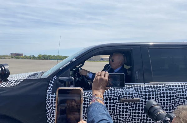 OK! We're doin' Truck Day again! Of course, in the Biden administration, Truck Day is a real thing, and it involves achieving climate goals, as opposed to just bringing truck to the White House lawn to distract and amuse President Laser Pointer.
