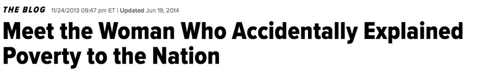 That's the Huffington Post. I'm "the woman." (NO PRESSURE, LINDA!) It went up Thanksgiving weekend 2013. It stayed on the front page for the entire holiday. After that, I was officially Poverty Chick. But this is the Internet and we cannot have nice things, so: