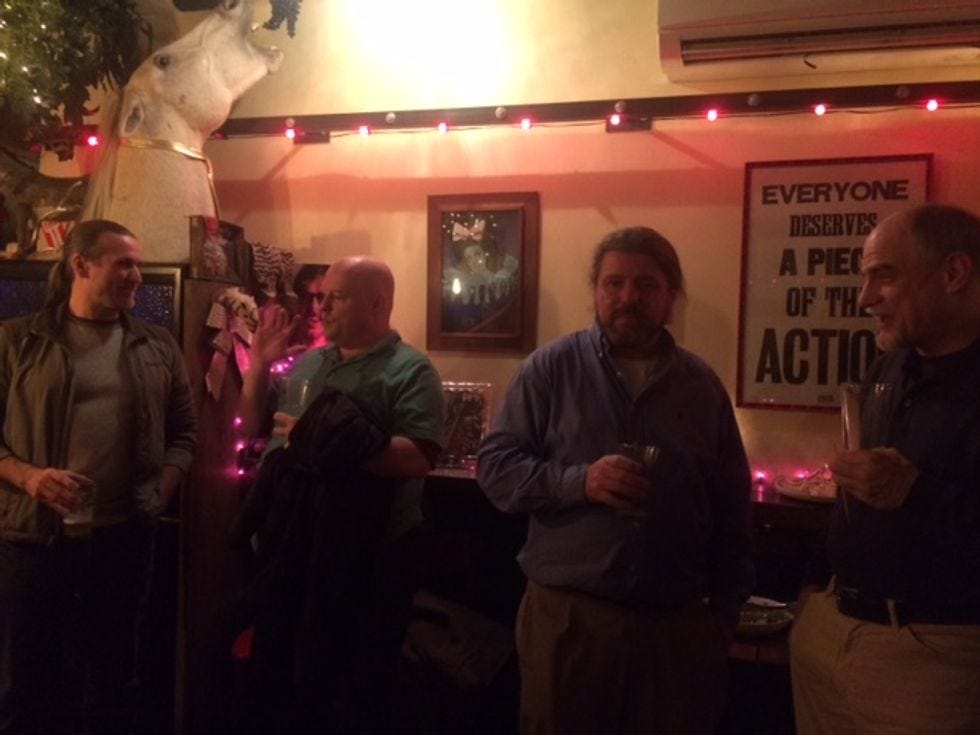 Please join us TONIGHT (Friday), 6 to 8 p.m. at Pi Pizzeria, 910 F St., NW. We had to promise a minimum of $500 in pizza and beer to get 'em to reserve a space for us, so you fuckers better show up to eat and drink it!